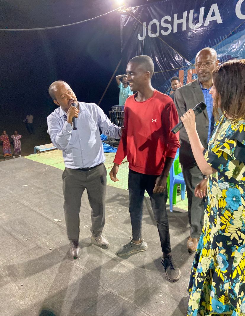 Ibu naik ke atas panggung bersama anaknya untuk bersaksi bagaimana anaknya tidak dapat melihat jauh selama 3 tahun tetapi pada malam itu, Tuhan benar-benar menyembuhkan matanya dan dia dapat membaca spanduk kami jauh di mana mereka berdiri.